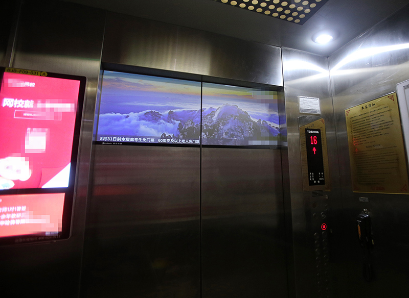 徐匯明佳苑小區(qū)一部電梯擠進(jìn)六個(gè)廣告 居民不堪其擾
