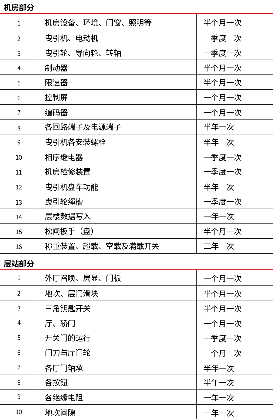 以上工作確保制動器靈活可靠。更多項目的維保內(nèi)容具體如下: