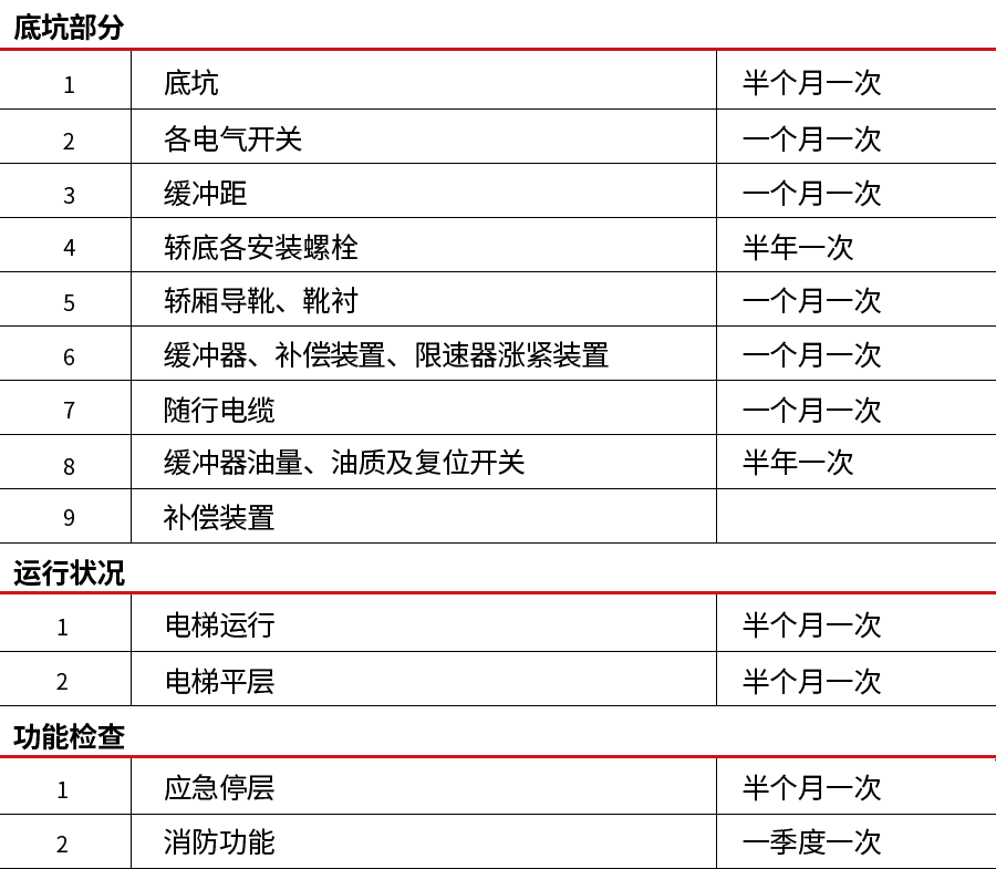 例如對于電梯非常重要的制動器(相當(dāng)于汽車剎車)則必須15天維保一次。