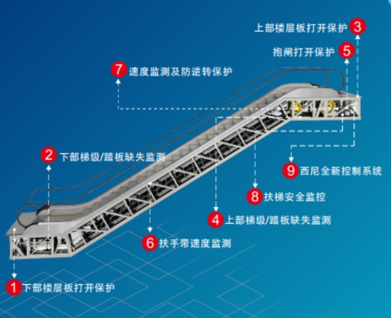 1.下部樓層板打開(kāi)保護(hù)2.下部梯級(jí)/踏板缺失監(jiān)測(cè)