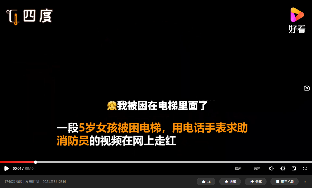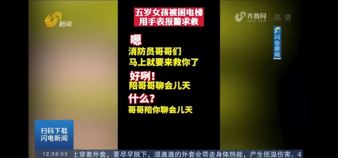 經(jīng)過聊天得知,小女孩獨(dú)自回家時(shí)乘坐的電梯突然出現(xiàn)故障。多次操作無果,想起在學(xué)校學(xué)習(xí)的消防知識,便用電話手表報(bào)警求助。