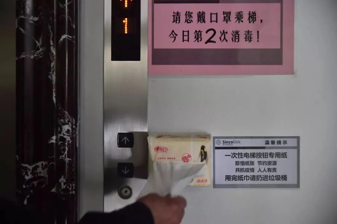●避免用手直接觸摸電梯內(nèi)的物體表面,包括按鈕。比如:觸摸按鈕時,可用肘部或手背部觸摸,或墊紙巾觸摸。