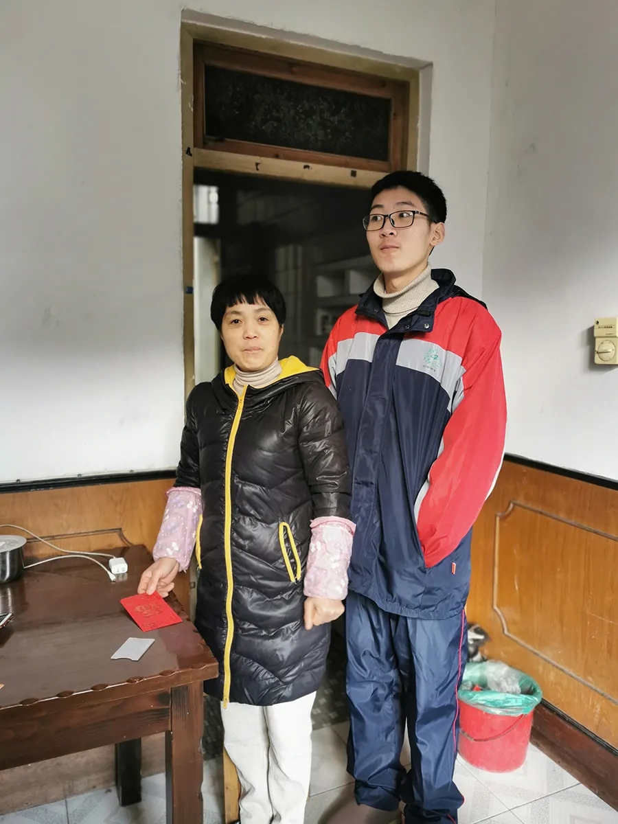 小孫同學是我們走訪的第二戶貧困學生,我們沿著彎彎繞繞的山路開了一段,在村口村民的指引下找到了他家。在臨安新農(nóng)村各家修繕一新的自建房中,孫同學的家仿佛時間停滯,還維持著上個世紀農(nóng)村房的面貌。我們走進屋內(nèi),白墻上沒有什么裝飾物。在交談中孫媽媽告訴我們她的不幸,丈夫和大女兒先后都因病去世,幸好有村委會給她申請了低保戶,親友時不時過來關心幫襯才讓她渡過最艱苦的時期。孫同學成績優(yōu)異,懂事乖巧,對孫媽媽是一種莫大的安慰。